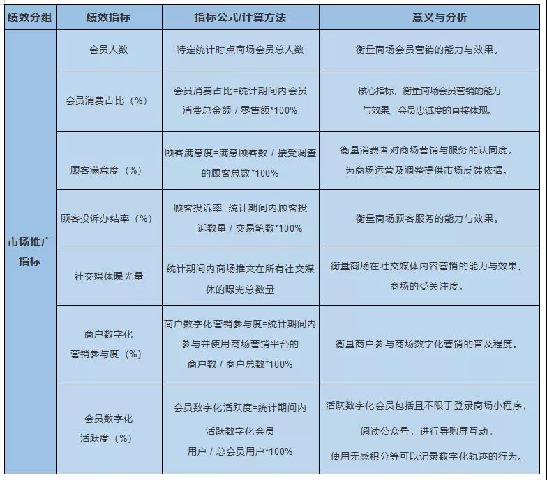 以下是中國百貨商業協會制定的2021《百貨和購物中心運營關鍵績效指標(KPI)體系》團標中推廣工作相關指標: