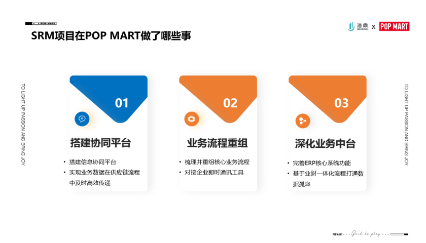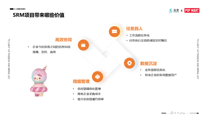 今年年初的時候,海鼎的汪路路總來了一次泡泡瑪特,當時我把痛點跟他聊了一下,他就說海鼎有一款產品叫SRM,通過這個契機,我們就把這個項目啟動起來了。