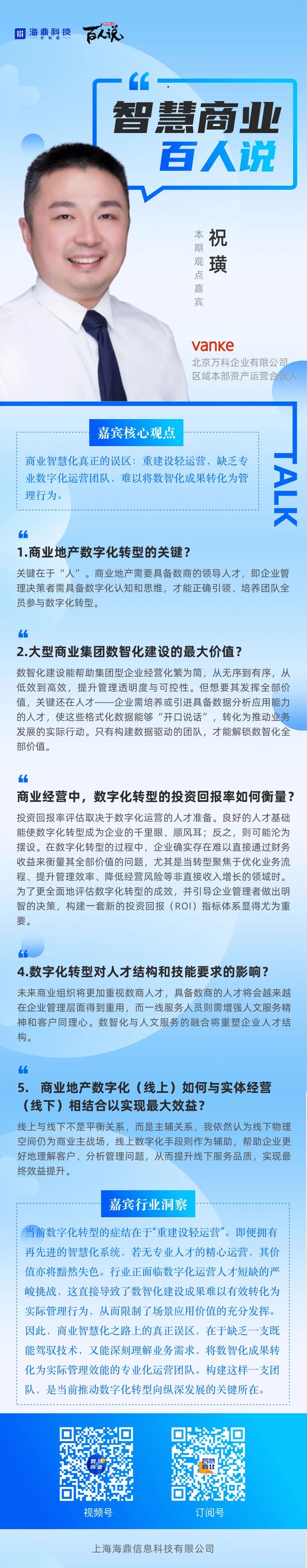 目前,編輯部已啟動【智慧商業百人說】項目的全國采訪采風計劃,旨在匯聚商業地產行業中的中高層管理者,通過他們的視角重塑商業地產的未來。項目將會以長海報的形式進行精心制作與傳播,簡潔而深刻地展示每位參與者的獨到商業見解,從而激發行業內對智慧商業更深層次的思考與創新。