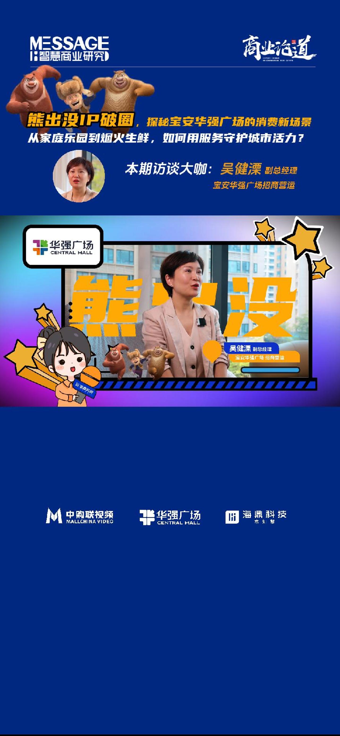 ??「熊出沒IP破圈,探秘寶安華強(qiáng)廣場的消費(fèi)新場景」[讓我看看] ??從家庭樂園到煙火生鮮,如何用服務(wù)守護(hù)城市活力?[疑問] [慶祝]本期訪談大咖:吳健溧 寶安華強(qiáng)廣場招商營運(yùn)副總經(jīng)理